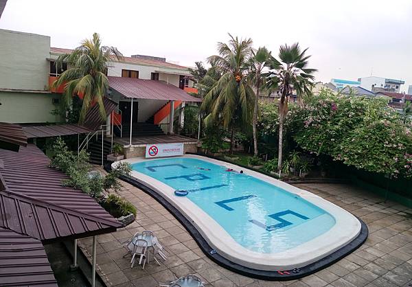學校游泳池搭配著中庭景觀,讓學生有戶外的空間可以放鬆一下,和朋友在池邊戲水也是很好的促進感情方式呢!